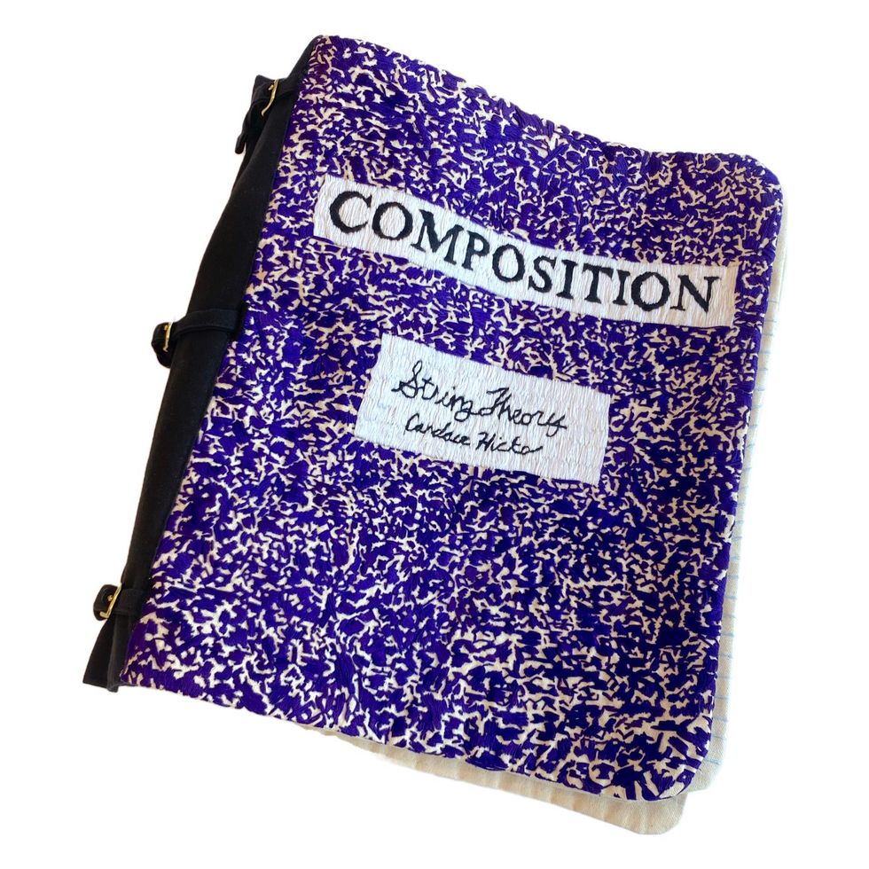 With a background in book art, Candace Hicks’ work is based on reading fiction. Her latest exhibition features her 8“x10.5” hand embroidered compositions on canvas she calls “Notes for String Theory” as well as her multi-page hand embroidered bookworks, “String Theory." Both of these series focus on literary coincidence and Hicks’ fascination with the phenomenon of learning a new word or hearing about something in particular only to begin seeing it seemingly everywhere or reading the same unique phrase or idea in more than one book in short succession.