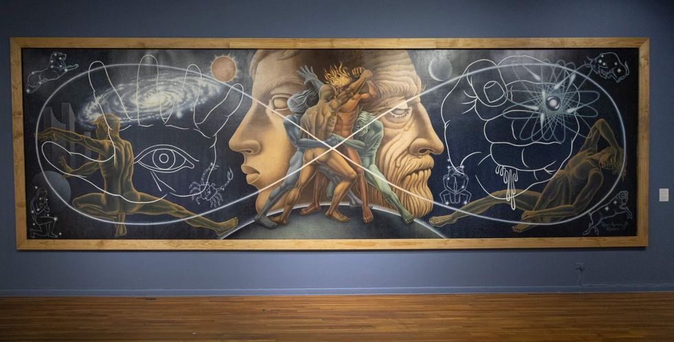 Born in Tonala, Jalisco, in 1921, Navarro Barajas’ work often explored humanity, mythology, and the cosmos. After decades at Austin's Medical Park Tower, Barajas' murals, "The Origins of Medicine," are on display at the Mexic-Arte Museum. The dual murals blend Greek mythology, medical symbolism, and Mexican artistic traditions to create a vibrant visual epic. Saved from obscurity by a community-led effort spearheaded by musician Sara Hickman, these murals celebrate Barajas' unique artistic legacy. This exhibition also features a portrait of the artist and early sketches of his work
