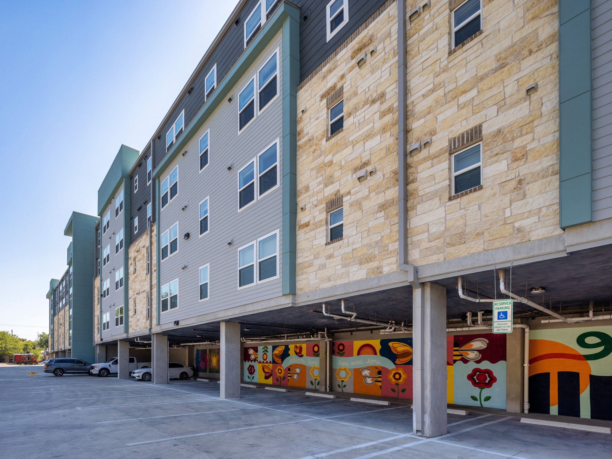 Public murals and other works by Texas artists also spruce up the development. Austin is represented by local sculptor Jonas Criscoe, who grew up here, local muralist Becca Gordon, and muralist Priscilla Lustig, who splits time between Austin and Los Angeles. Visiting muralists Alannah Tiller and Alex Saxon — from San Antonio and Dallas, respectively — also lent their talents.
