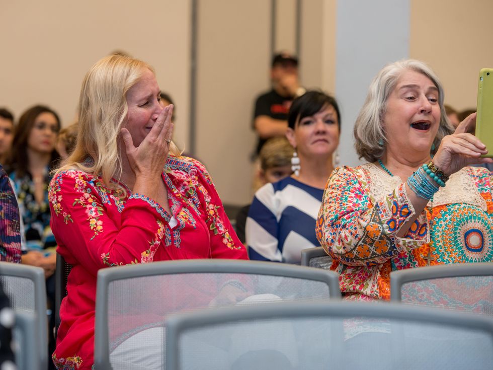 Watson bounded to the stage to accept her prize, hugging sons Justin and Austin before the family posed for pictures with a trophy and a giant check.