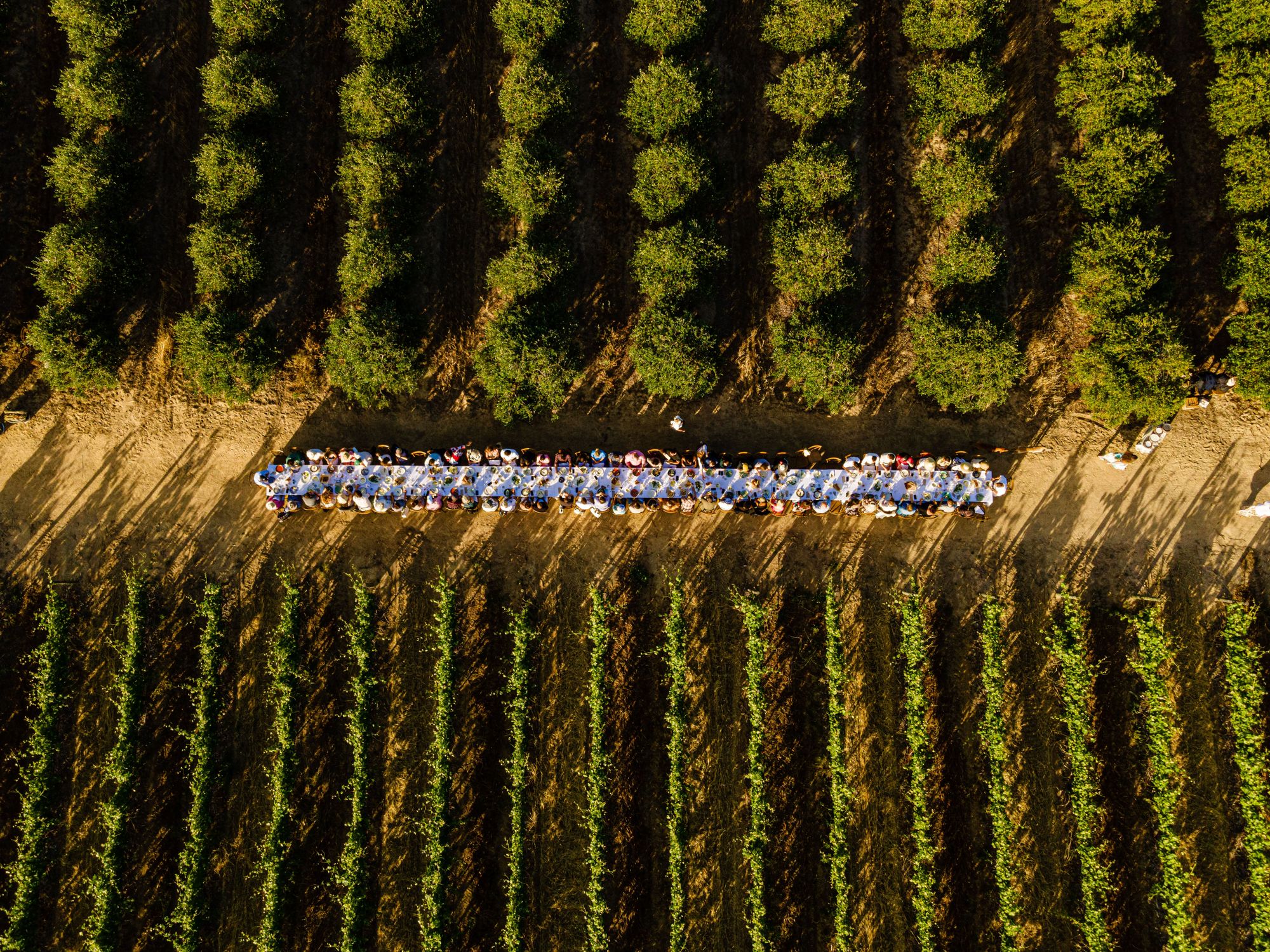 The Outstanding in the Field dinner series was first produced in 1999 by "land artist" Jim Denevan, who is famous for his crop circle-like aerial mandalas on beaches. The pastoral series has been held in all 50 states and more than 24 countries since then. Each dinner is different by nature (literally) of settling into a different environment. Guest chefs are also carefully chosen from each city's highest ranks and tasked with showcasing local products.