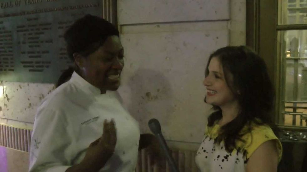 Among the tasty morsels: tuna tataki and green papaya salad by Private Social's Tiffany Derry; kabocha caramel cheesecake bites by Oak's Sarah Green; curried big eye tuna in curry cones by Spoon's John Tesar; deviled eggs, pimento cheese tartlets, and ham and cheese tartlets by Sissy's Southern Kitchen's Lisa Garza; and smoked duck with ham and fig mostarda by The Grape's Brian C. Luscher.