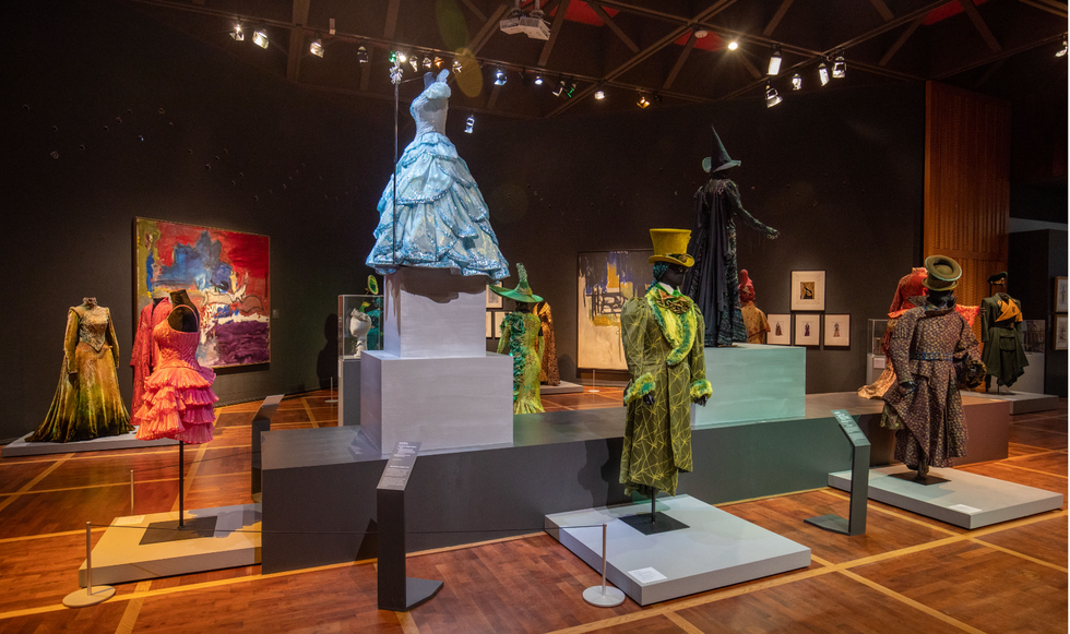 Hilferty is the costume design mastermind behind the Tony Award-winning costumes in the hit Broadway musical, from Glinda's resplendent blue ballgown to Elphaba's magical finale dress. They're just two of the incredible array of Hilferty costumes currently on display at the McNay. Other costumes spotted were vibrant Ozian outfits, Glinda's pink 'Popular' dress, the Wizard's green suit, and more.